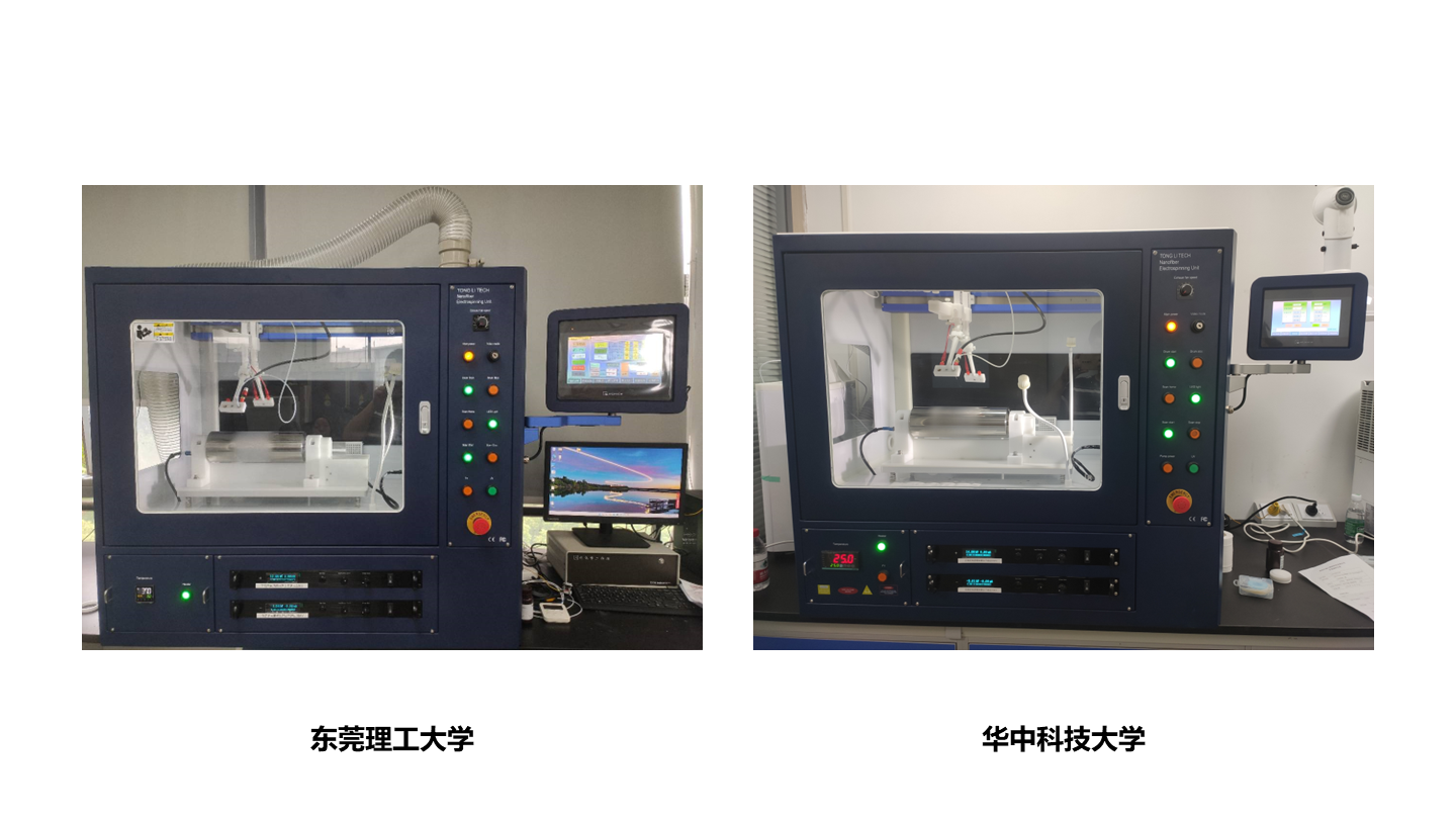 通力微納高壓靜電紡絲機TL-Pro,搭載正負高壓電源,并內置絕緣設計,既確保了紡絲箱的清潔,又保障了操作安全。其設計集成了單噴頭、多噴頭、同軸噴頭和并肩噴頭等多種噴頭系統,以及平板、滾筒、籠狀、超定向、細軸和碟狀等各類收絲器。噴頭與收絲器相互配合運動,同時具備獨立控制的雙通道微量泵,能夠滿足不同的實驗需求。此外,TL-Pro還提供三十余種升級配件,可根據不同的應用方向進行自由組合。這一多功能系統能夠制備多種形態的納米纖維,其產出的纖維膜均勻且厚度可調,保證了納米纖維膜制備的高度重復性。