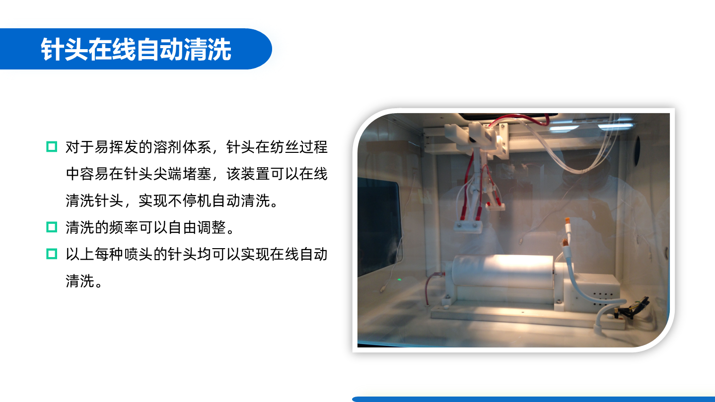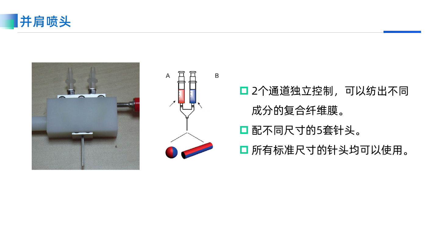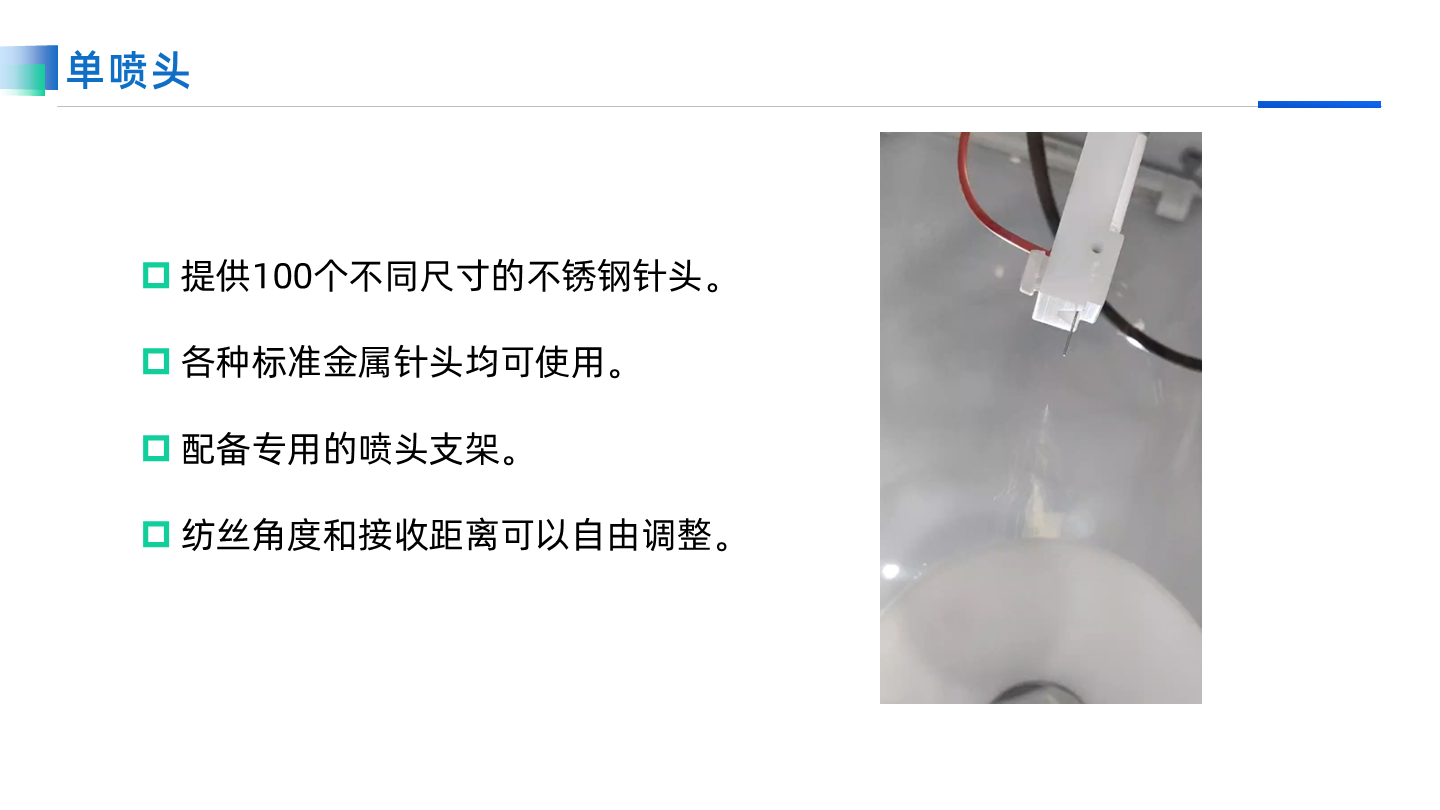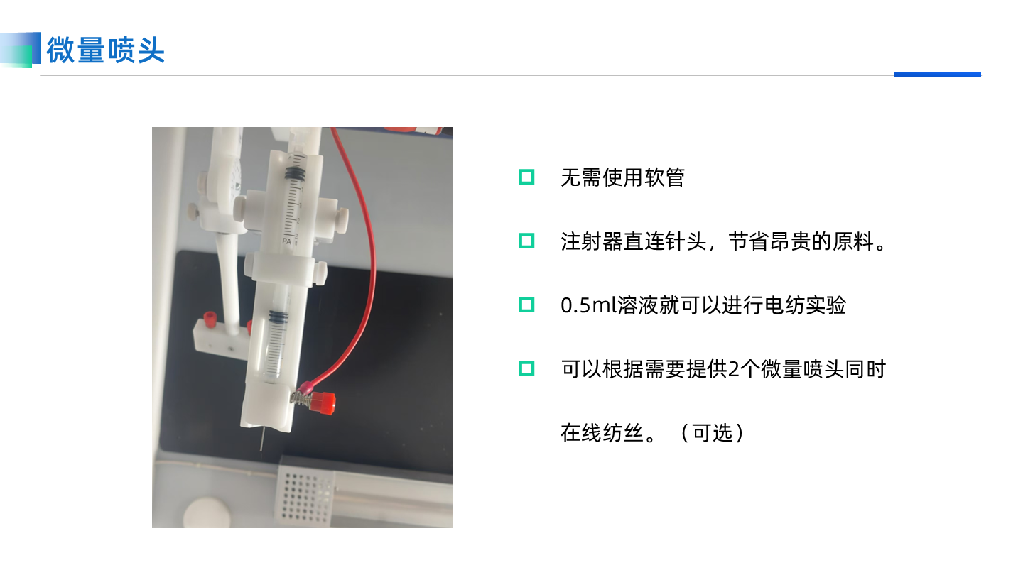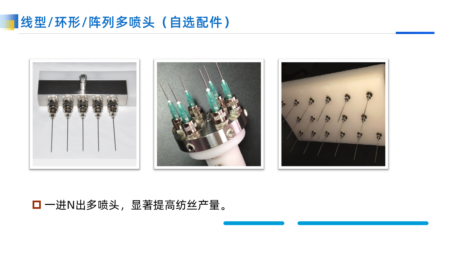 專用于共軛紡絲的噴頭支架,承載≥4個針頭進行共軛紡絲。