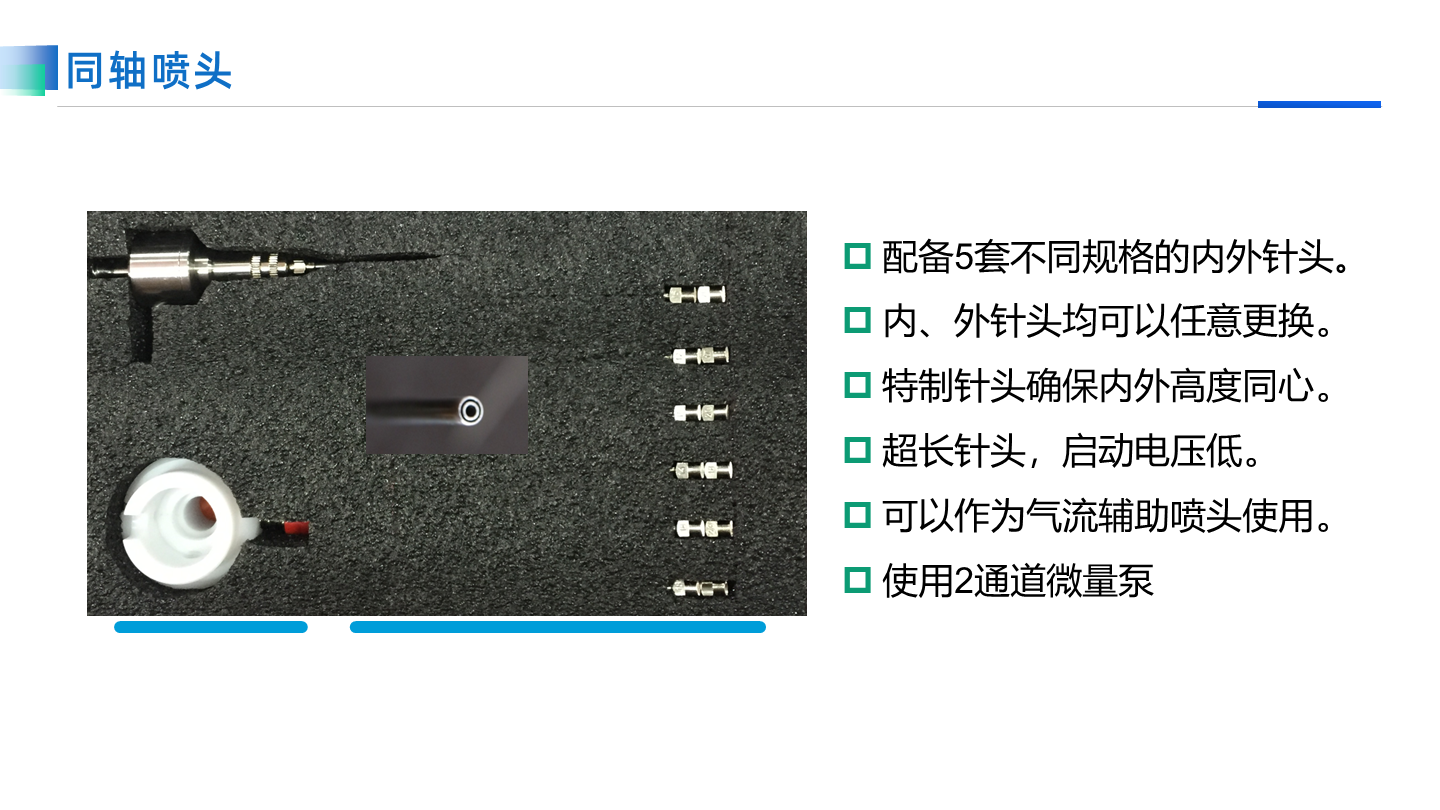 TL-01高壓靜電紡絲機是一款基礎但功能完備的設備,適用于教學和基礎紡絲實驗。它配備了完整的紡絲配件,包括五種不同類型的噴頭和收絲器,能夠實現多種實驗組合,為用戶提供豐富的選擇。