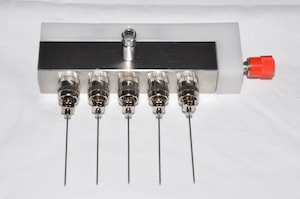 多噴頭靜電紡絲技術(shù)是目前廣泛用于納米纖維量產(chǎn)的主要方法。通力微納經(jīng)過多年研發(fā)設(shè)計(jì)制作了各種規(guī)格和數(shù)量的多噴頭組合,配合特殊的智能運(yùn)動(dòng)系統(tǒng),可以生產(chǎn)高均勻性的纖維膜,滿足實(shí)驗(yàn)室小試—中試—量產(chǎn)的所有需求。
